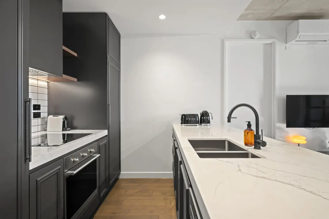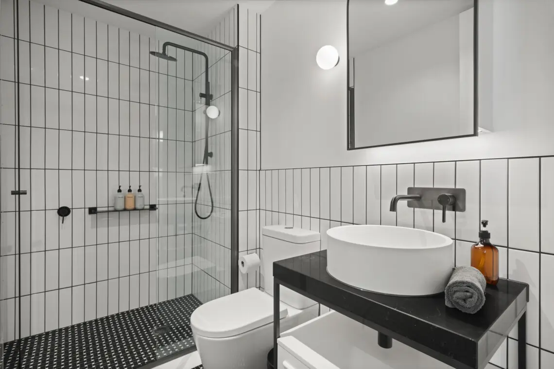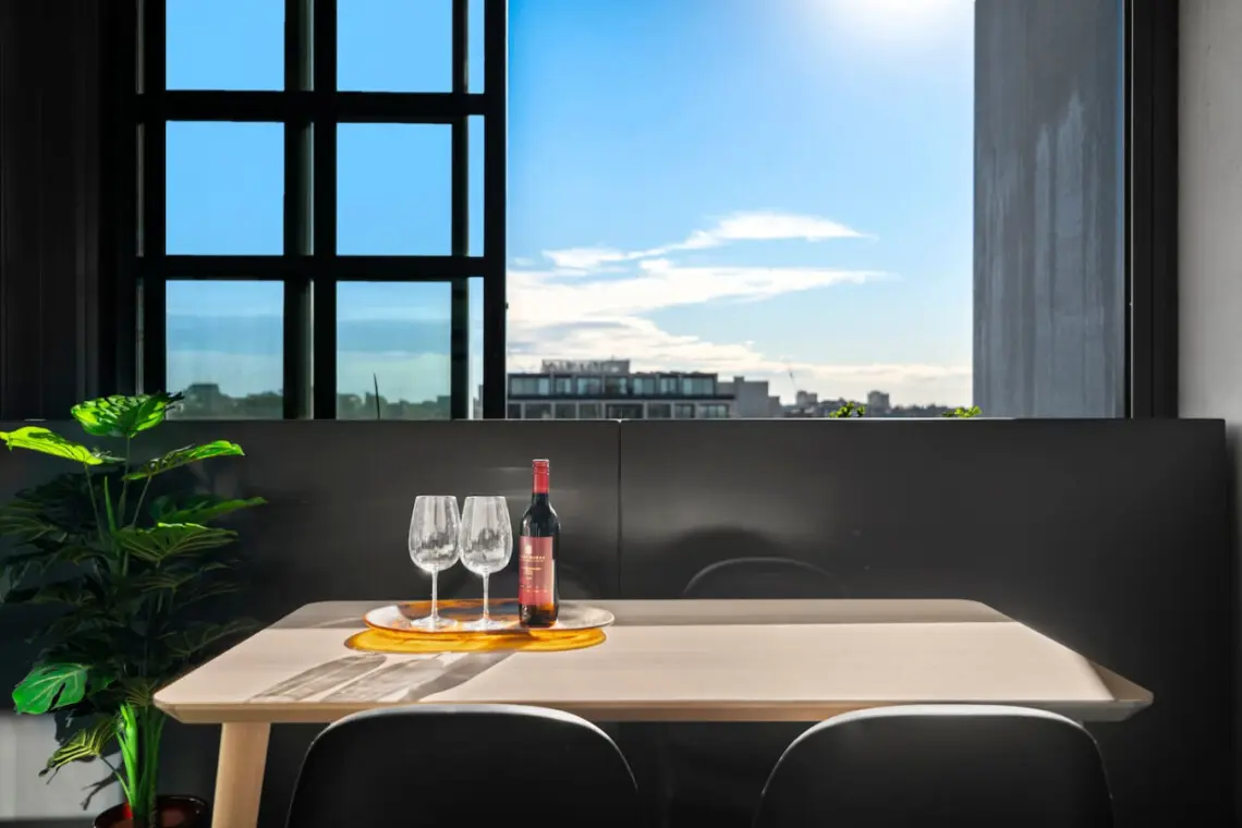 Stay in a stylish 2 bed apartment that has access to a rooftop terrace and spa pool – just off Smith Street!